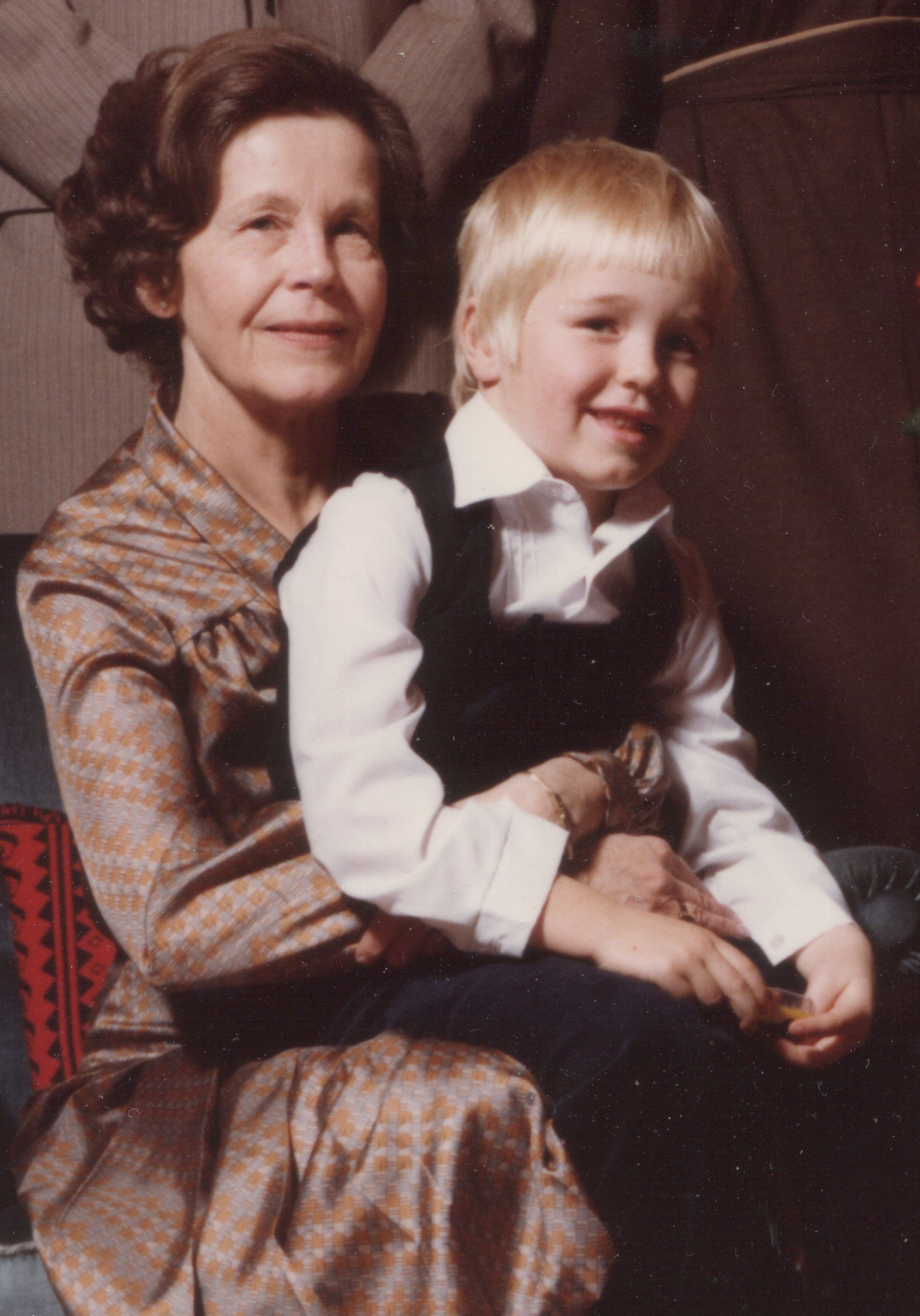 63-vuotias Kerttu-mummi Oskarin kanssa ison 60-vuotispäivillä syksyllä 1979